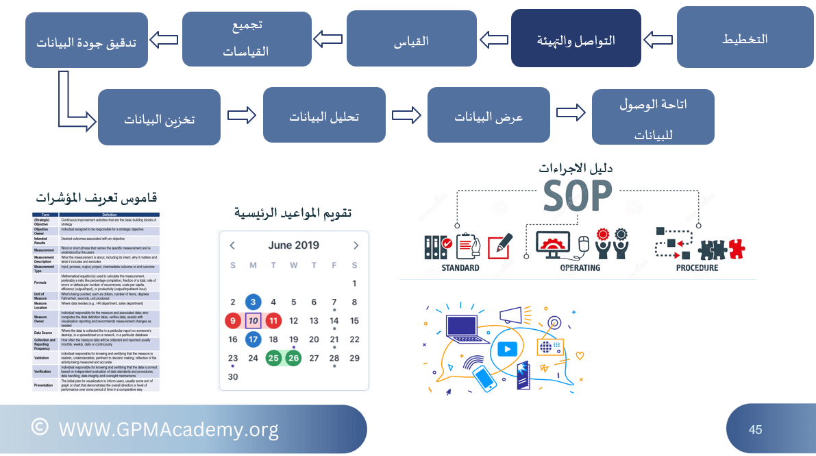 The quality of performance reports and the subsequent decisions made during performance review sessions fundamentally depend on the accuracy of the actual KPI data collected according to each indicator’s designated frequency. Most performance management systems face a critical challenge: the inability to collect precise KPI values in a timely manner for reporting. This program aims to equip participants with the essential knowledge and skills related to various methods for measuring KPI values, enabling them to select the appropriate measurement approach and ensure the quality of the collected data.