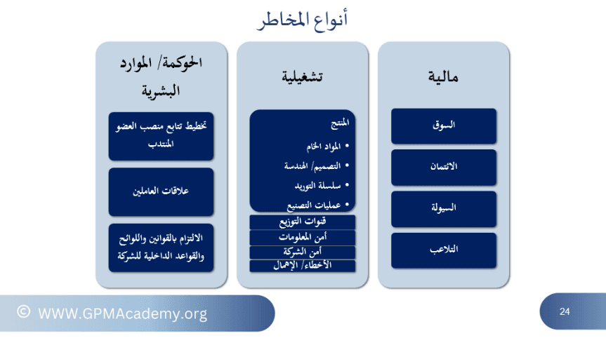With the accelerating advancements in information and communication technologies, coupled with continuous changes in the political, legislative, and environmental landscape, it has become essential to anticipate the types of risks that could hinder an organization from achieving its strategic objectives. The COVID-19 pandemic serves as a real-world example of unforeseen risks that can profoundly impact all aspects of life. A common misconception is that strategic risks are limited to, or synonymous with, financial risks. In reality, financial risks are just one type of risk organizations may face. Other risks include business model risks, operational and organizational risks, and governance risks. Therefore, it is critical for managers to enhance their skills in identifying risks and developing plans to address them. This program aims to equip participants with the knowledge and skills necessary to manage risks effectively, minimizing their potential impact on organizational strategic plans.